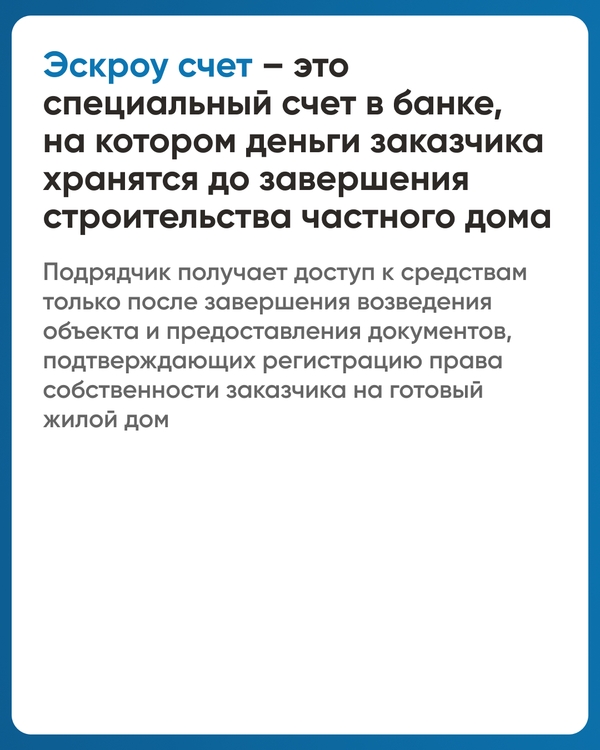 Почти год назад рынок индивидуального жилищного строительства изменился и стал безопаснее. Ведь у заказчиков строительства частных домов появился надёжный инструмент защиты — счет эскроу.
